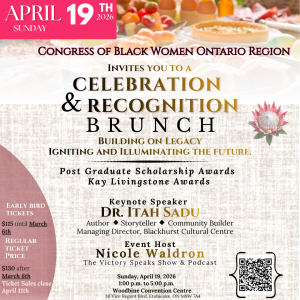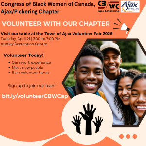 The Congress of Black Women of Canada, Ontario Region – Ajax/Pickering Chapter is a voluntary non-profit organization that was established in March, 1996. Our chapter consists of a dynamic group of women who are dedicated to advocating on behalf of Black women and their families. Members work tirelessly to accomplish those goals.